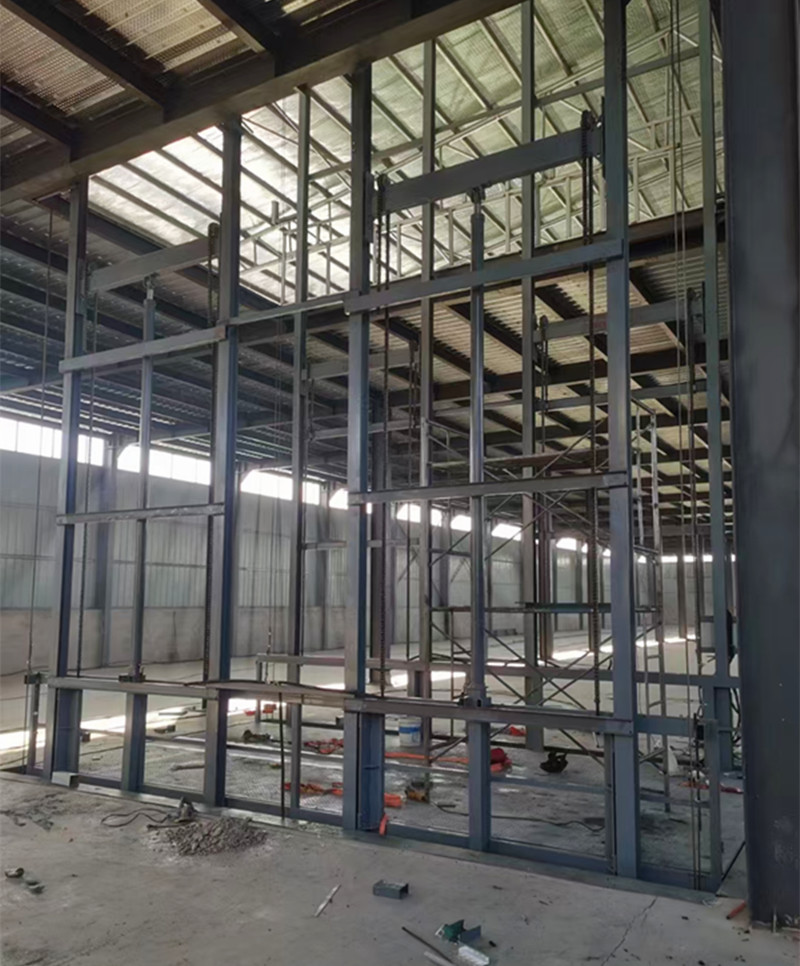 大噸位導(dǎo)軌式貨梯,主要用于樓層間高空貨物運輸。主要用在載重量輕,臺面尺寸要求比較小的環(huán)境。載重1-3噸,升高高度1-25米。室內(nèi)、室外均可安裝導(dǎo)軌式升降機也叫做液壓提升機,提升高度高,采用旁置油缸,運行平穩(wěn)、噪音低、維修方便、使用壽命較長;停電時,可使用手動應(yīng)急下降,安全、方便、快捷、實用;地坑深度一般為15cm-30cm,頂層高度不受限制,可根據(jù)現(xiàn)場環(huán)境定做用。