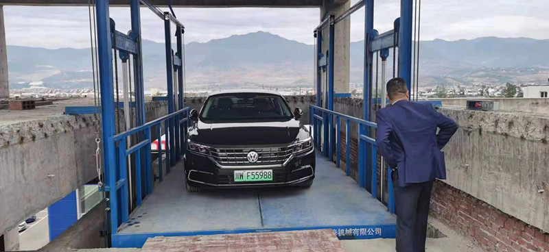 導(dǎo)軌式升降貨梯也可用于汽車4S店的樓層間上下汽車用。