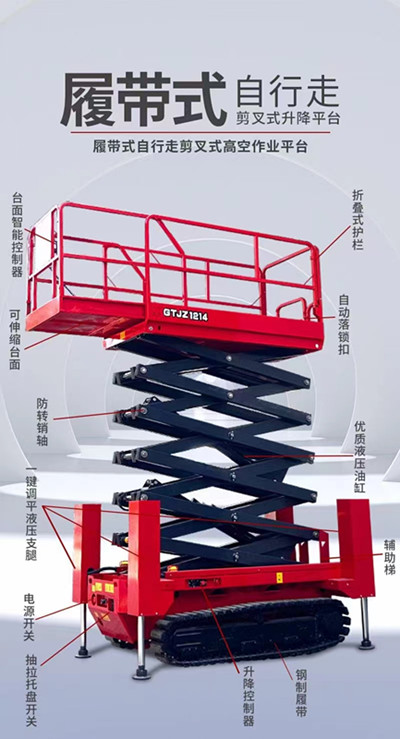 自行式履帶升降機(jī)也可叫做履帶式升降平臺,自走式履帶升降機(jī),履帶式升降機(jī)是根據(jù)當(dāng)今市場環(huán)境所造就的一款新型升降機(jī),履帶式升降機(jī)區(qū)別于常見的輪式升降機(jī),外形好像履帶式裝甲車,霸氣側(cè)漏,是一款室外復(fù)雜環(huán)境使用的肌肉型升降機(jī)