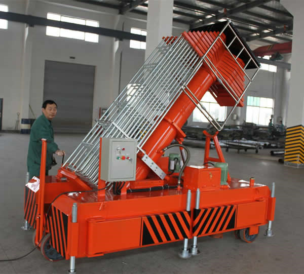 15662431777套缸式升降平臺(tái)具有設(shè)計(jì)新穎,體積小,外型美觀,操作維修方便,升降平穩(wěn)等優(yōu)點(diǎn)。整機(jī)由平臺(tái)、伸縮油缸、單梯式或雙梯式防轉(zhuǎn)機(jī)構(gòu)、底盤(pán)油箱、支腿、行走輪等組成。平臺(tái)由伸縮油缸直接頂升,當(dāng)啟動(dòng)電機(jī)時(shí),由電機(jī)帶動(dòng)齒輪泵供油,油液經(jīng)單向閥及電磁通道輸入油缸,伸縮油缸則逐節(jié)上升,當(dāng)平臺(tái)升到最大高度時(shí),系統(tǒng)壓力也就達(dá)到了額定工作壓力。